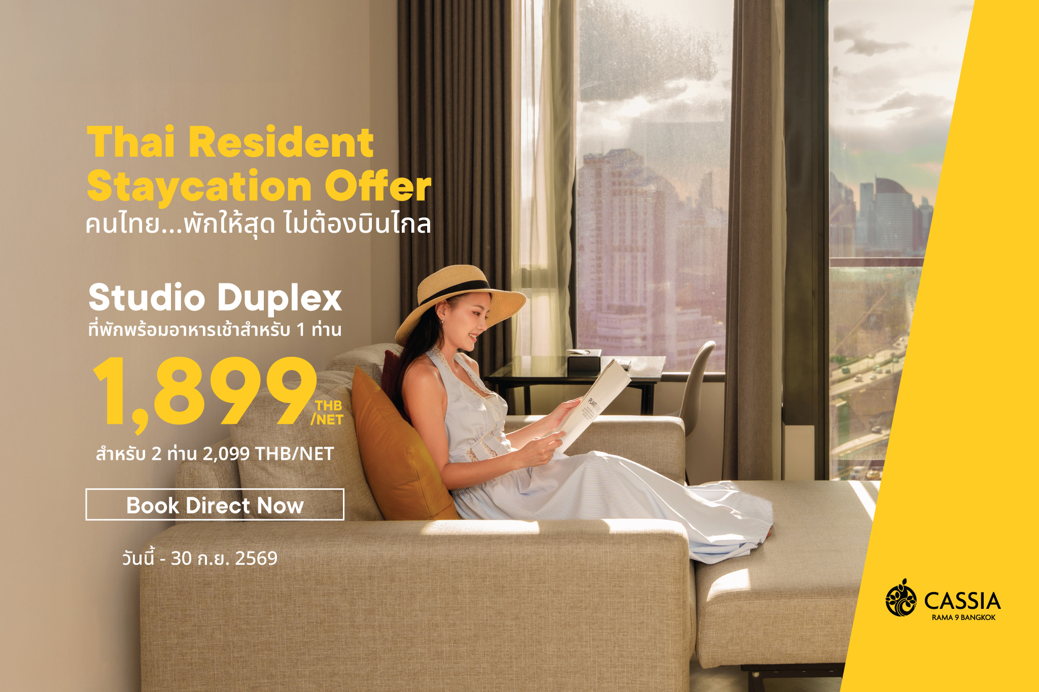 Unlock the Best Stay in Rama 9 – only at Cassia Rama 9 Hotel. Be among the first to experience the vibrant charm of Cassia Rama 9 with our exclusive limited-time offer. Stay in our stylish loft suites featuring modern kitchens, spacious living areas, soaring ceilings, and private balconies overlooking Bangkok’s stunning skyline. Just 15 minutes from RCA’s nightlife and Rajamangala Stadium’s epic concerts, Cassia Rama 9 puts you right where the action is. Don’t miss your chance to elevate your stay with this special debut offer.